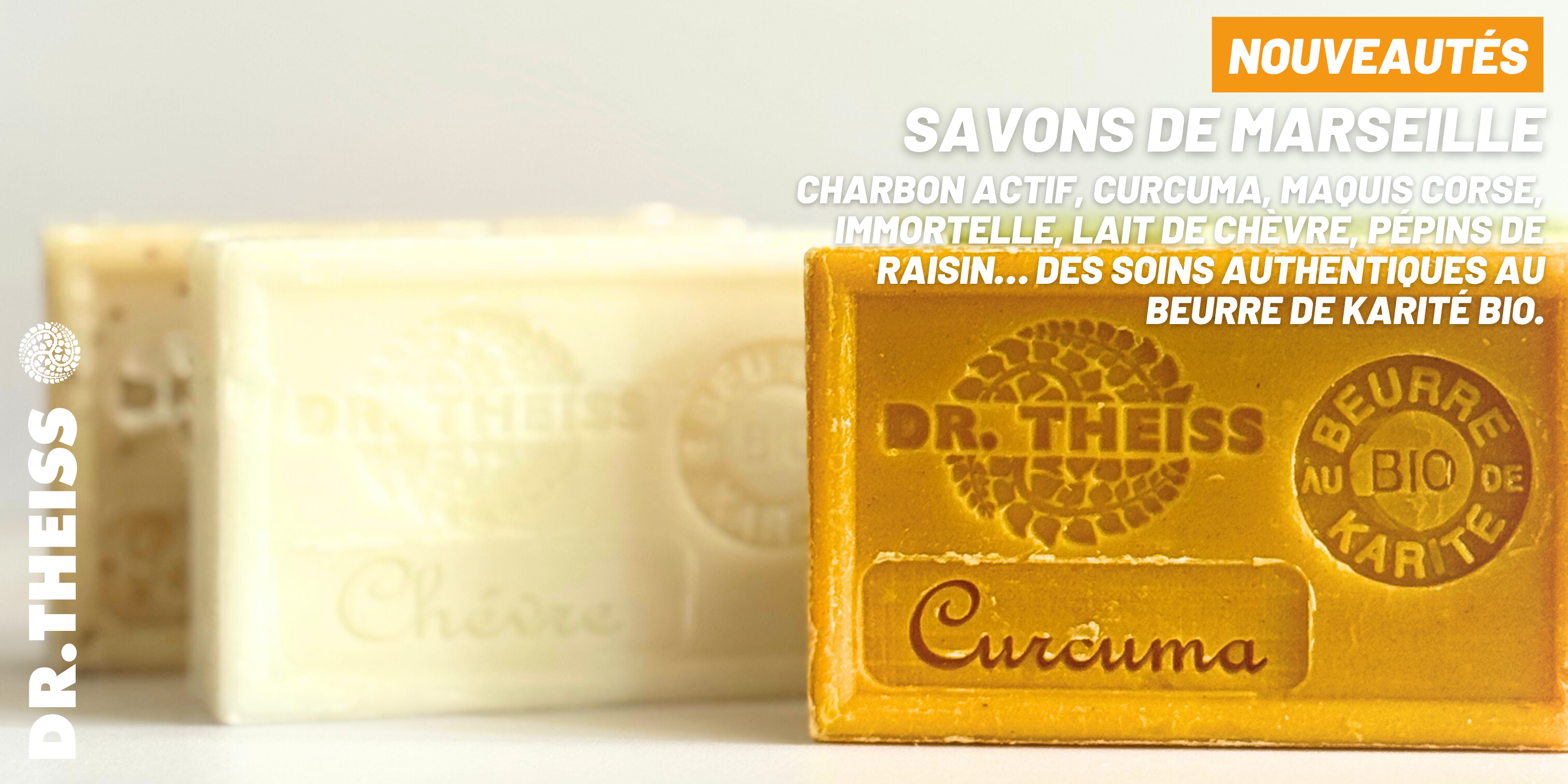 Toujours fabriqués selon la recette traditionnelle à base d’Huile d’Olive Bio et de Beurre de Karité Bio, nos Savons de Marseille nettoient en douceur et respectent toutes les peaux. Découvrez nos nouvelles senteurs qui apportent fraîcheur, plaisir et naturel à votre routine du quotidien : Curcuma (sans parfum), Charbon Actif (sans parfum), Immortelle, Maquis Corse, Pépins de Raisin et Lait de Chèvre.