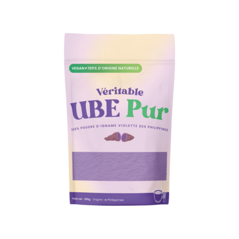 L’ube, ou igname violette (Dioscorea alata), est un tubercule originaire d’Asie du Sud-Est, particulièrement apprécié aux Philippines. Sa couleur naturellement pourpre est le signe d’une richesse exceptionnelle en antioxydants. Nous avons sélectionné une poudre d’ube d’une grande finesse, à la teinte intense et au goût subtilement sucré. À incorporer dans vos lattes, pâtisseries, smoothies ou desserts pour une touche originale, colorée et bienfaisante.